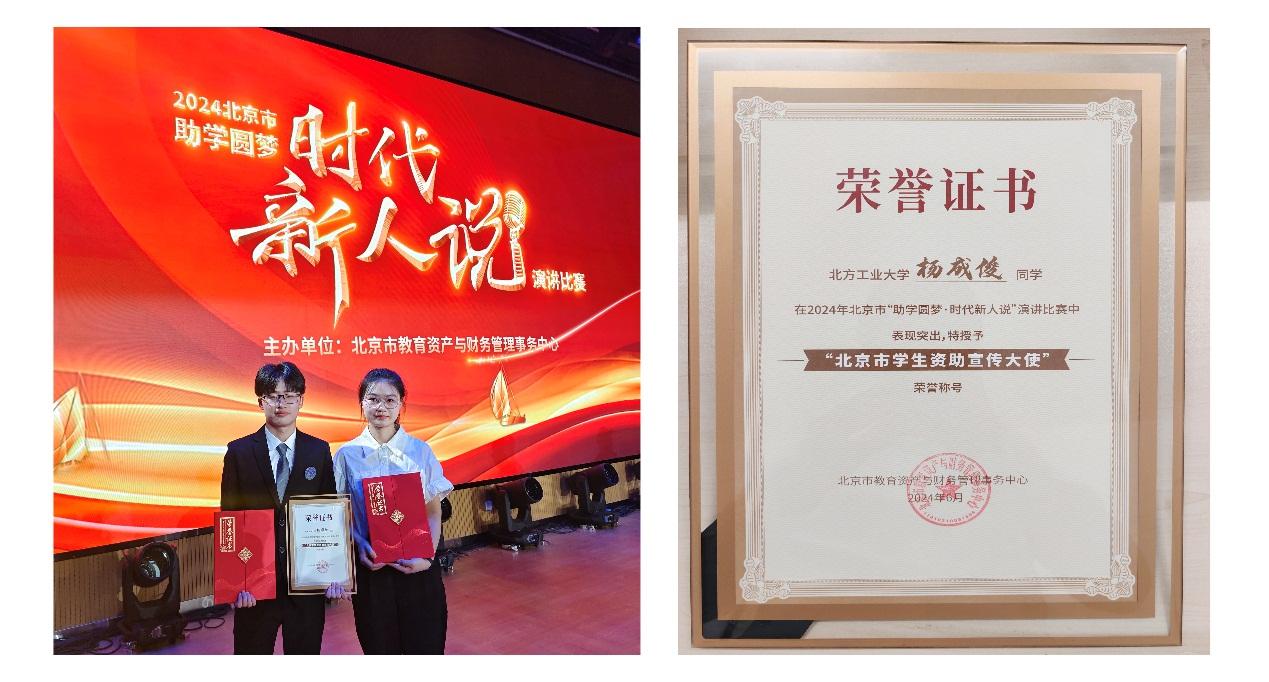 6月7日,在2024年北京市“助学圆梦·时代新人说”演讲比赛总决赛中,公司2026年国际足联世界杯杨成俊同学表现优异,获评2024年北京市“员工资助宣传大使”。同时,杨成俊同学与建筑与艺术学院彭祥敏同学入选“北京市员工资助宣讲团”。