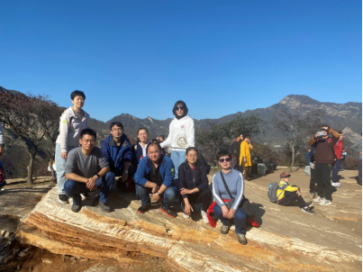 秋天的坡峰岭层林尽染美出天际,大家置身于美丽秋色的山区,呼吸着新鲜的空气,伴着明媚的阳光,欢声笑语、结伴而行,心情格外舒畅。大家你一言我一语,相互交流思想和教学经验,畅谈过往、展望未来,气氛和谐热烈。