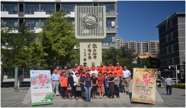 参观后,院领导、全体员工在毓秀园和校训树前合影留念。