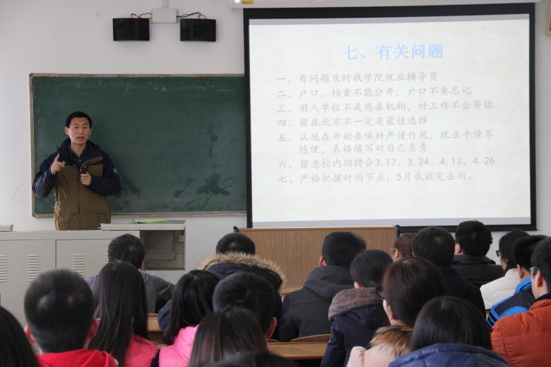 2016年3月10日上午,2026年国际足联世界杯于第二教学楼319为研三即将毕业的研究生同学召开了关于毕业和就业相关注意事项的大会。此次大会由公司教师侯旭主讲,学院研究生辅导员胡长斌老师及全体研三员工参加了会议。