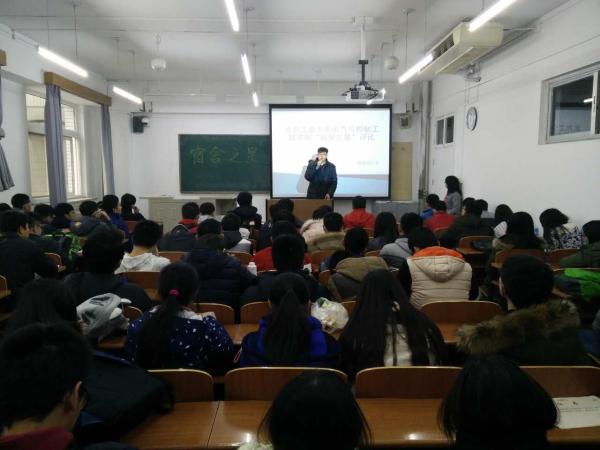 公司团总支书记赵帅作了赛前致辞,他希望新生高度重视宿舍文化建设,培育和谐共进的宿舍氛围,将成果巩固并真正落实到今后的学习生活中去。经各宿舍报名及学院初步筛选,共计产生12个优秀宿舍进行最终比拼。各宿舍长以PPT形式作了现场展示,展示内容包括宿舍logo设计、宿舍成员风采、宿舍环境及宿舍公约四个方面。最后,15级员工辅导员李庚洋为大赛作了总结。
