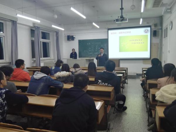 班会由团支部书记刘媛媛主持。首先由学长李达、马斌以及学姐赵萌分享了自己在大学阶段的学习经历以及保研和考研准备工作,特别提到了老员工活收获的不仅是知识,更多的是为人处世的交流能力,以及保持良好的心态最重要。随后班导师刘蕾以学姐的身份跟大家讲述了自己的考研经历,着重讲述了考研所包含的四个科目:数学,英语,政治,专业课如何复习,如何提高自身的综合素质以应对考研复试和就业面试。本班员工代表韩雪薇、姜力、张明月、姜午阳和李智浩也分别就自己对未来“就业,考研,出国”的选择情况陈述了自己的观点,做好规划,不要给自己留下遗憾。最后由隋书记总结发言,他指出在异常关键而又极易导致同学迷茫的大三时期,应该多多与学长学姐交流,或访问高年级同学,参考他人的未来规划,逐渐确立好自己的方向目标;并提出考研是一种高形态的就业,唯有拥有过硬的综合素质和突出的特点,方可考上理想的学校,铺好未来的道路;也鼓励对未来还存有迷茫的同学尽快确定目标,并为之努力奋斗。