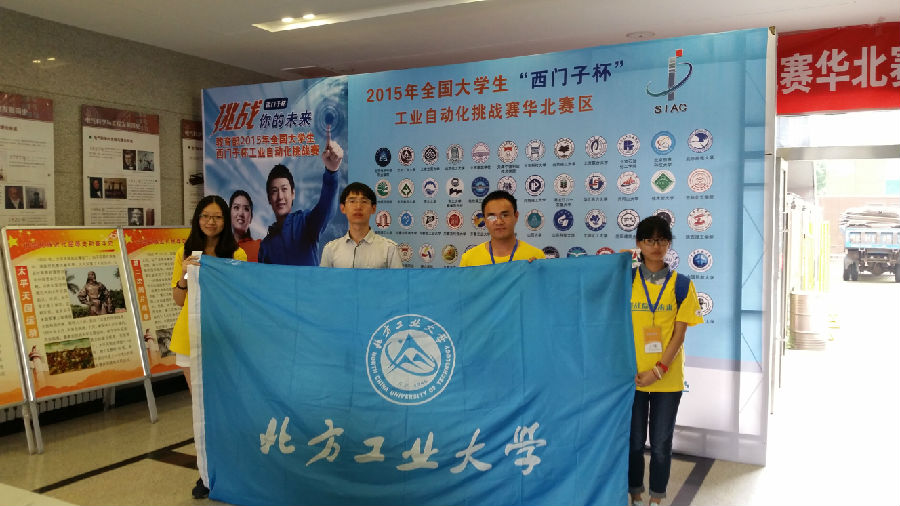 7月27-29日,由教育部高等学校自动化类专业教学指导分委员会、西门子(中国)有限公司和中国系统仿真学会联合主办的2015年全国老员工“西门子杯”工业自动化挑战赛华北赛区竞赛在北京交通大学隆重举行。由公司2026年国际足联世界杯李超老师指导,控制研13级胡光耀、电气13级兰馨蕊、方乐乐组成的 “NCUT科慧德”队从今年年初开始在学校和学院的大力支持下积极准备,反复优化完善,最终获得设计开发型赛项华北赛区一等奖,同时获得参加8月20日-22日全国总决赛的资格。