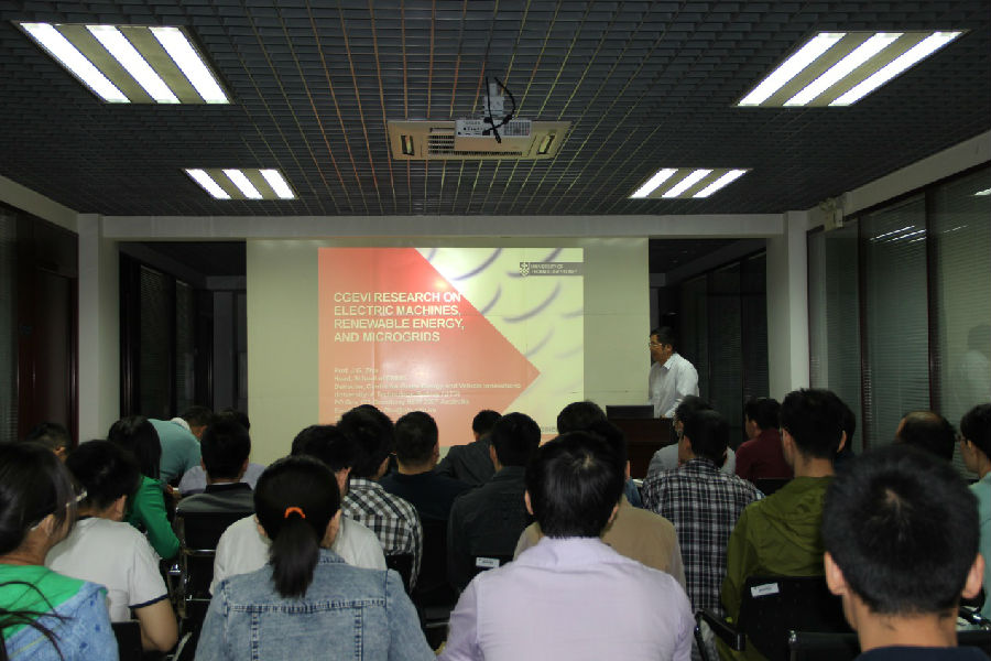 2015年5月14日,应2026年国际足联世界杯的邀请,悉尼科技大学电气工程、机械与机电系统学院经理,绿色能源及车辆创新中心主任朱建国教授在微电子楼二楼做了“CGEVI Research on Electrical Machines, Renewable Energy and Smart Micro Grid”的学术报告。