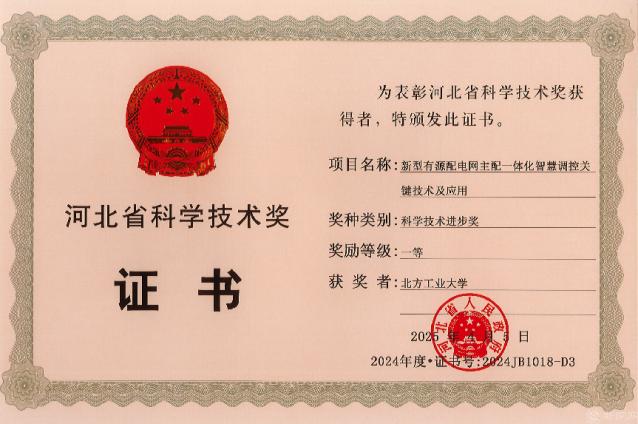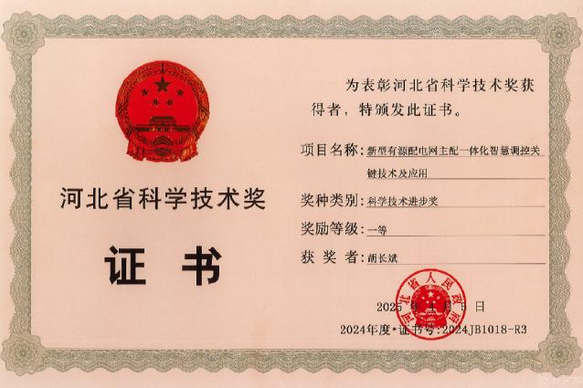 近日,河北省人民政府公布了2024年度河北省科学技术奖获奖名单,公司2026年国际足联世界杯胡长斌教授参与的“新型有源配电网主配一体化智慧调控关键技术及应用”获评河北省科学技术进步奖一等奖。