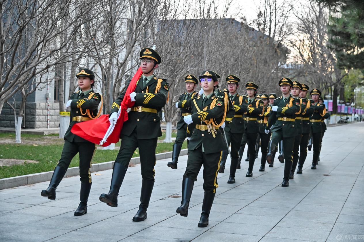 清晨,寒风凌冽,随着国旗护卫队迈着整齐划一的步伐入场,全场师生肃立致敬在雄壮的国歌声中,五星红旗冉冉升起,迎风飘扬。