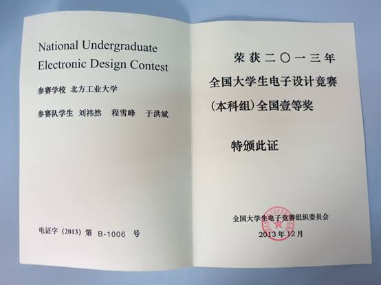 2013全国一等奖获奖证书