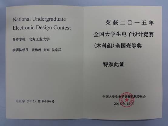 2015全国一等奖获奖证书