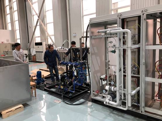 员工参与飞轮储能系统的组装与调试