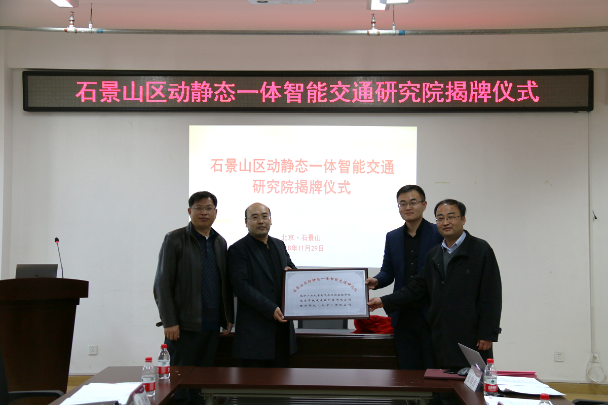 最后,王力经理、于程水总经理、汤波总经理签订了合作协议,柯军副主任、韩飞副处长、王力经理共同为“石景山区动静态一体智能交通研究院”揭牌、授牌。
