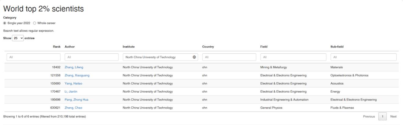 该榜单是斯坦福大学John P. A. Ioannidis教授团队与Elsevier与合作的项目成果,发布在Elsevier旗下的Mendeley Data网站上。榜单采用论文引用数、h指数、合著调整后的hm指数等6种综合指标(c-score),从近700万名科学家中遴选出世界排名前2%的科学家,反映科学家在全球范围的影响力及为相关领域发展作出的杰出贡献,入选科学家分为22个科学领域和174个子领域。