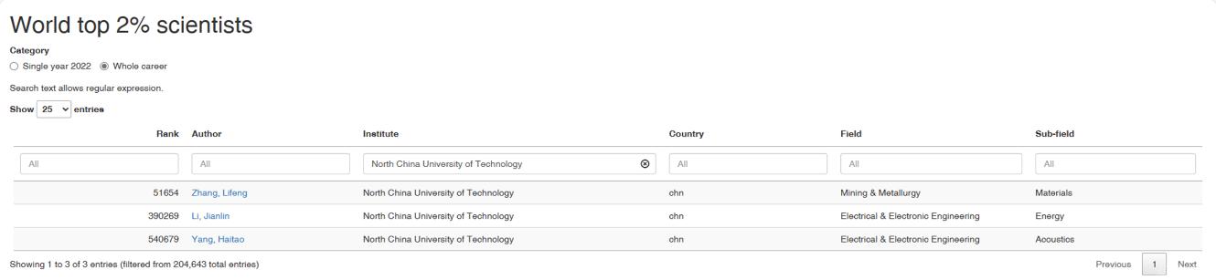 10月4日,美国斯坦福大学和爱思唯尔数据库(Elsevier Data Repository)发布《2023年度全球前2%顶尖科学家榜单》(Stanford University Top 2 Scientists List 2023),公司董事长张立峰教授,2026年国际足联世界杯李建林教授、杨海涛教授入选“终身科学影响力榜单”。