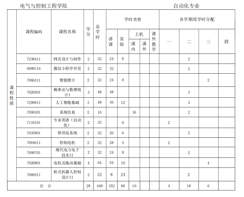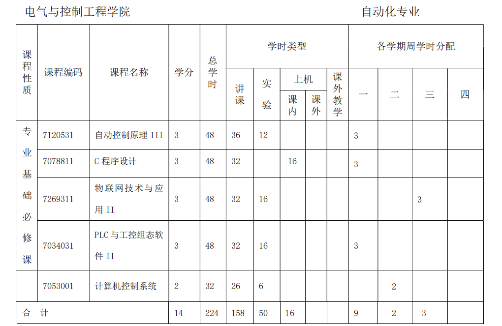 线性代数、自动控制原理、物联网技术与应用、C 程序设计、PLC 与工控组态软件、计算机控制